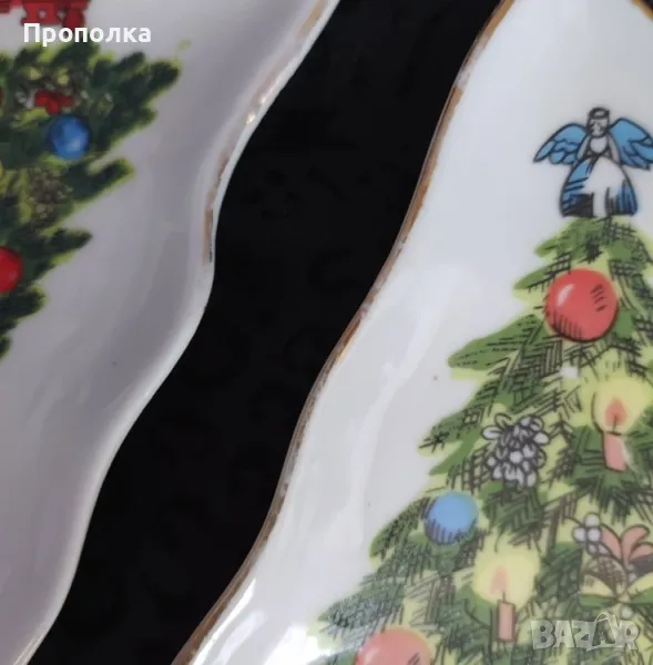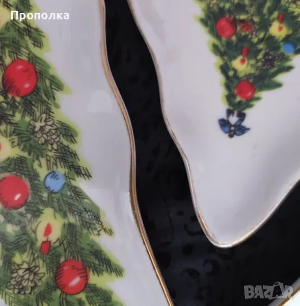 порцеланов комплект - Коледа Малки чинийки във форма на елхички 3бр. и
