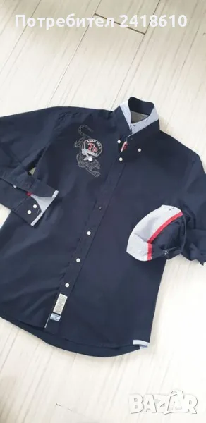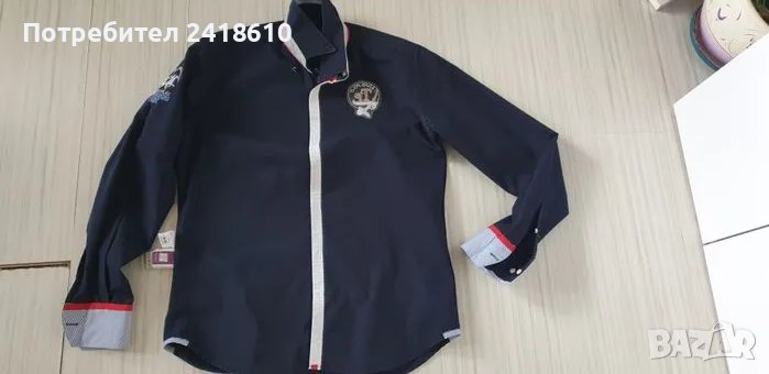 Оригинална мъжка тъмно синя памучна риза, - новa!