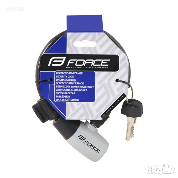 Заключващо устройство за велосипед с катинар FORCE RON 120см/8мм Черно
