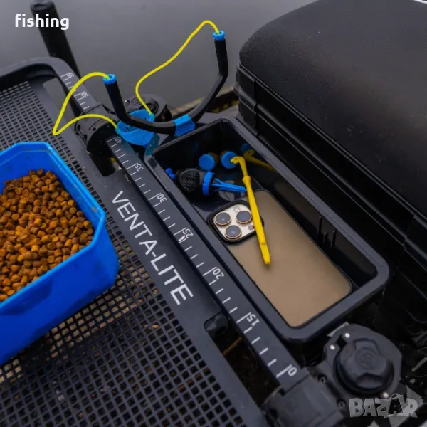 Тази аксесоарна тава е предназначена за съхранение на малки предмети като рибарски принадлежности, напитки и телефон. Проектирана е да пасва между седалката и страничната тава Venta-Lite, като осигурява допълнително пространство за съхранение.
