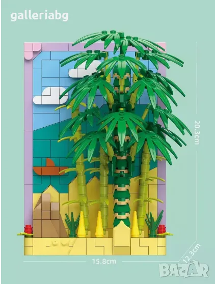 Уникален и ефектен конструктор, който пресъздава триизмерна сцена с бамбук, поставена в рамка. Може да се използва като декорация за бюро, рафт или стена. Съдържа 403 части, съвместими с популярни тухлички. Подходящ както за деца над 6 години, така и за възрастни почитатели на модели и детайлен дизайн.