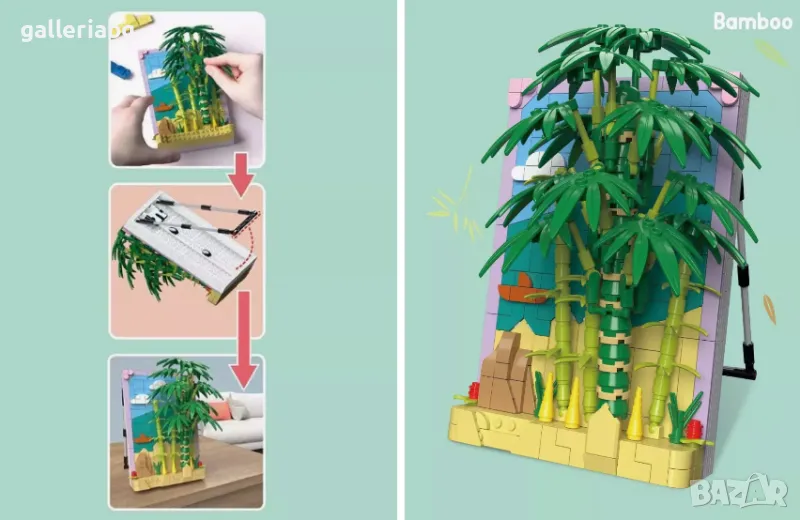 бамбук конструктор, рамка конструктор,a растения LEGO съвместим, интересна декорация, тухлички модел, LEGO цветя, подарък за дете, подарък за възрастен, конструктор за витрина, модел с листа, 3D рамка