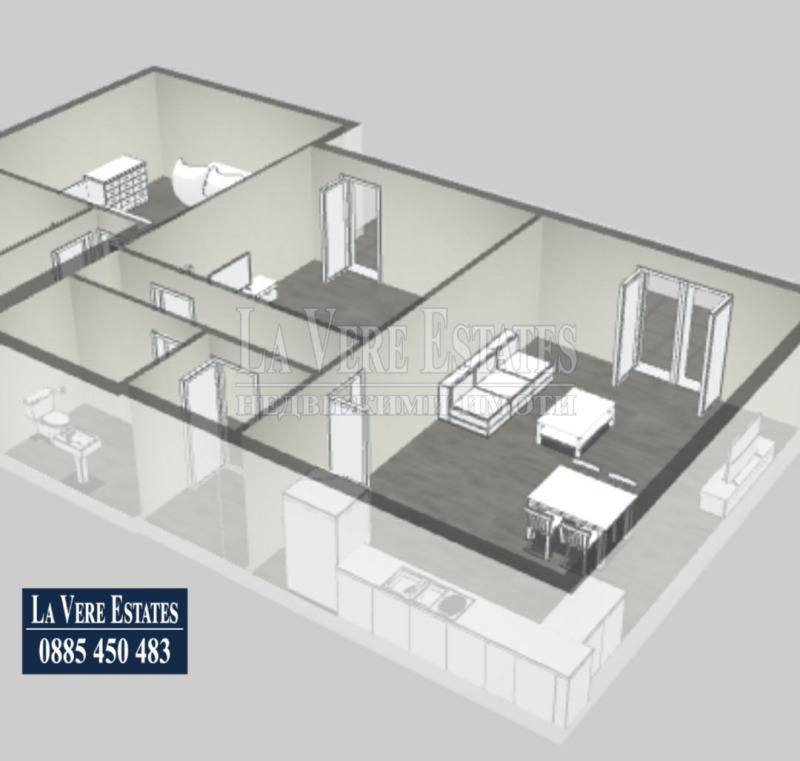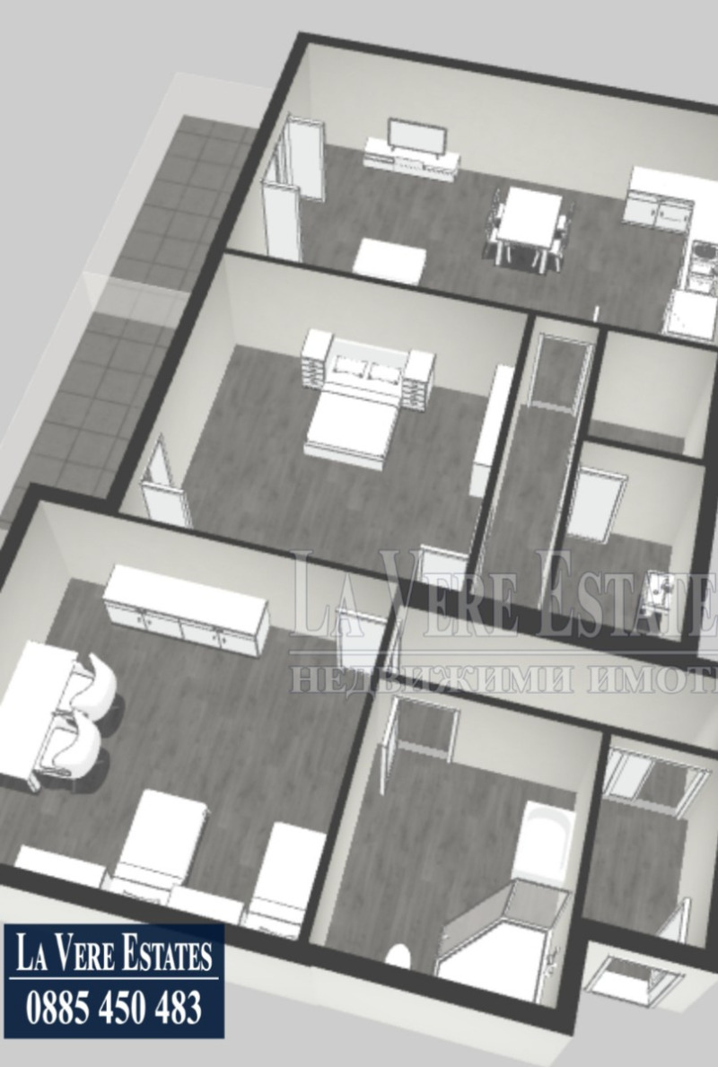Представяме Ви тристаен апартамент за продажба в нова, първокласна сграда с централна локация. Имотът е с площ от 103.08 кв.м, разпределени между голям дневен тракт с кухня с излаз на тераса, две спални, едната с излаз на тераса, две санитарни и мокро помещение. Жилището е с отлично местоположение близо до Парк на Възрожденците, детски площадки, голям търговски център, заведения, спирки на градски транспорт. Сградата е с висок клас изпълнение, завършена е с модерна и иновативна фасада, с асансьор , шесткамерни прозоречни системи, с високи нива на топло и шумо изолация, изцяло топлофицирана, съчетана с апартаменти с правилни разпределения и оптимизирани общи части. Степен на завършеност- Акт 15, пред акт 16, възможност за покупка на паркоместа и/или гараж, атрактивна схема на плащане. Предимства - комуникативна локация, висока енергийна ефективност, гараж/паркомясто. За повече информация и оглед , обадете се на 0885 450 483 .La Vere Estates съдейства за всякакъв вид кредитиране При Преференциални Условия с Всички банки.
