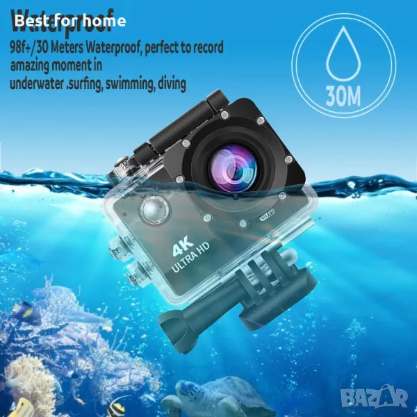 📷 98 ФУТА ВОДОУСТОЙЧИВА КАМЕРА - Поставете камерата си във водоустойчивия калъф и я закрепете здраво, можете да се гмуркате до 30 метра. Тази подводна камера е идеална за водни спортове като плуване, сърф, гмуркане и т.н. Тази подводна камера се предлага и с акумулаторна 1050mAh батерия(, зарядно устройство. Водоустойчивият калъф позволява на камерата да прави снимки/видео до 98 фута (30 метра) ).