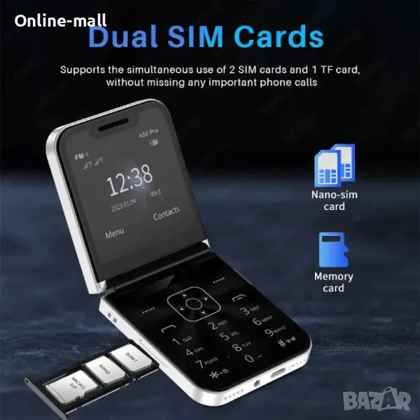 Мини Сгъваем Телефон Mini Flip A50 Smart Phone с 2 SIM карти Мини Телефон
