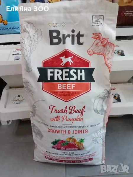 5. Brit Fresh Beef With Pumpkin Puppy Large Bones&Joints, за подрастващи кученца. С прясно телешко и тиква 12 кг.Цена 113 лв.