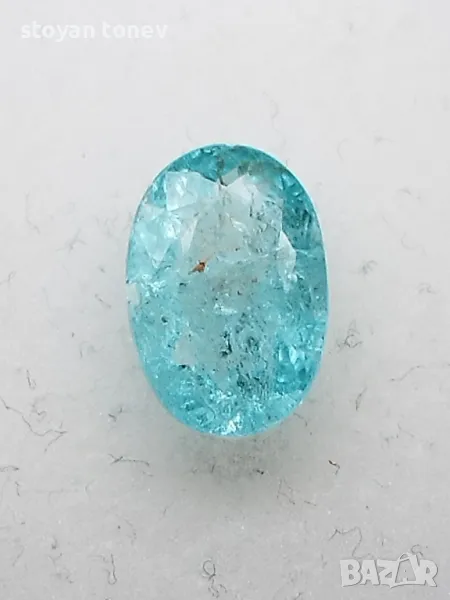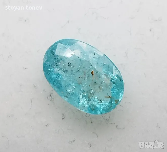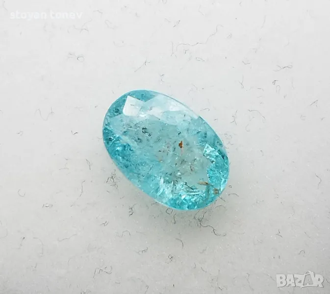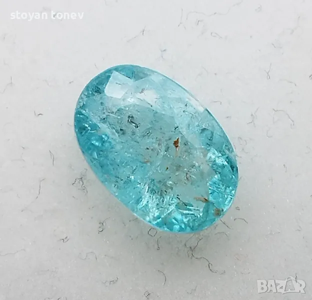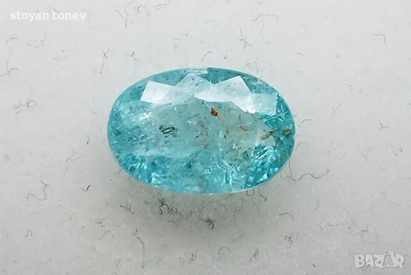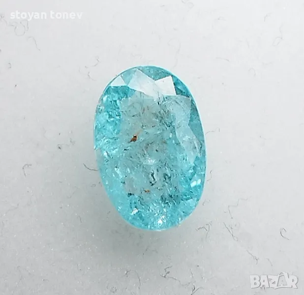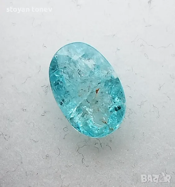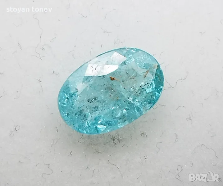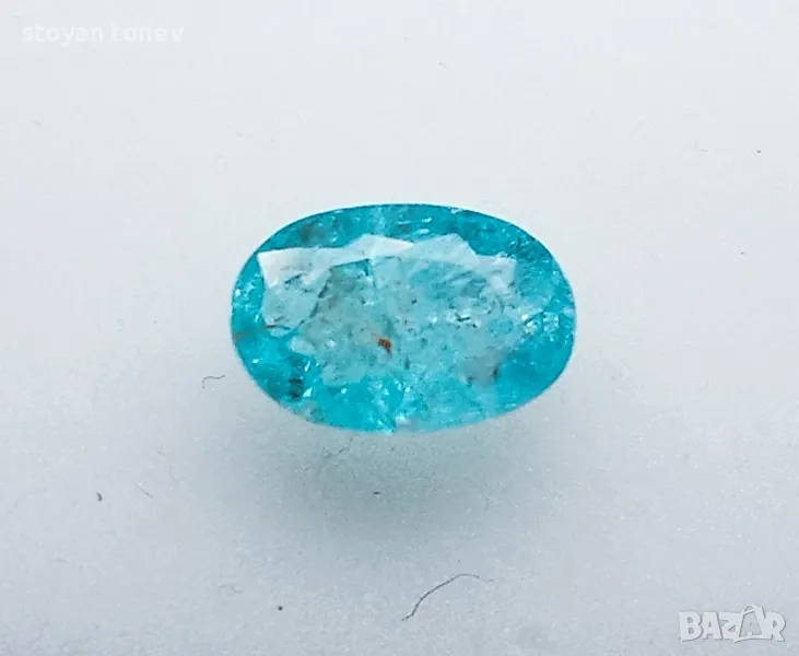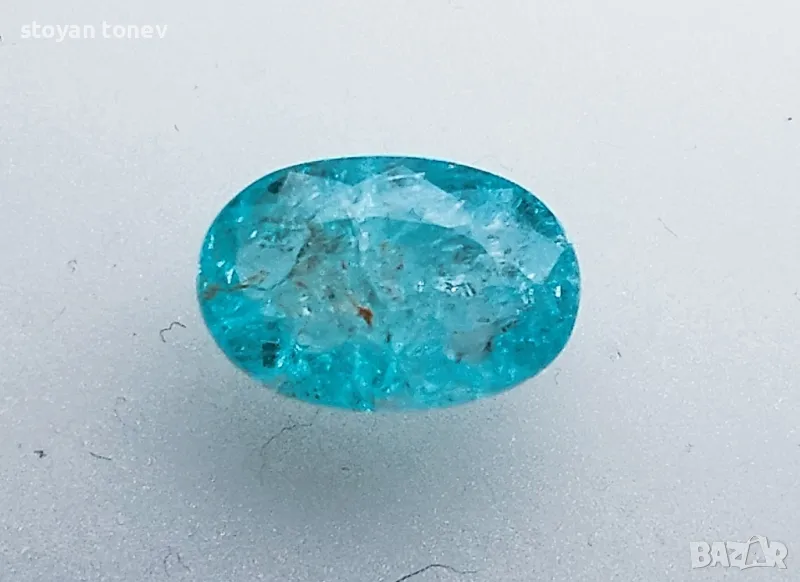 Цвят: Зеленосин – неонов тюркуазен блясък с умерена наситеност (класически Paraiba тон!).