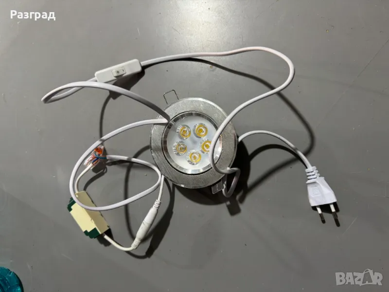 Лед подвижни луна с пет диода от алуминий за вграждане,всяка една има адаптер от 220V на 12V кабел ключ за включване и щепсел.