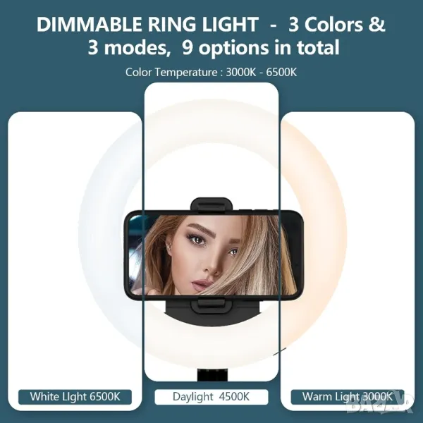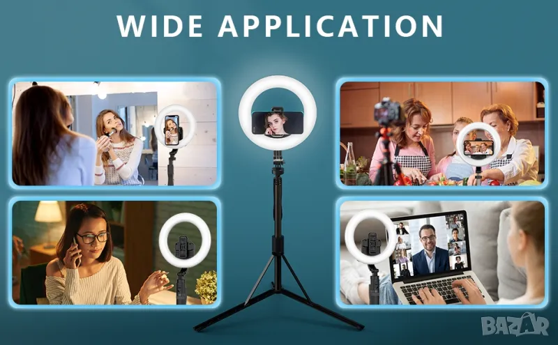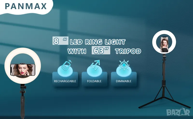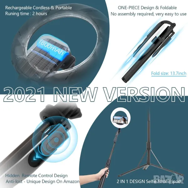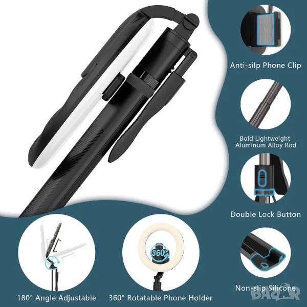 * Интегриран статив: Може лесно да се трансформира в изключително стабилен статив с диаметър на основата 50см. идеален за снимки, видео разговори , стрийминг на живо или тик ток клипове.