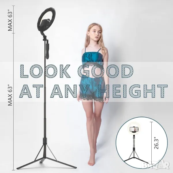 Също височината от 160 см използвана с функцията трипод е сходна на височината на човешките очи от земята и е идеална за заснемане на tiktok съдържание.