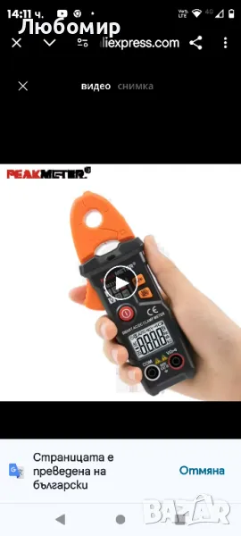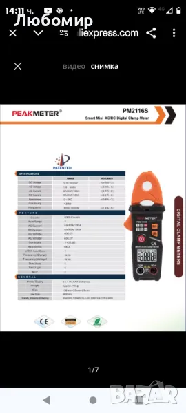 Peakmeter Smart Mini AC/DC Цифров измервателен уред с клещи Мултиметър RoHS с автоматичен обхват