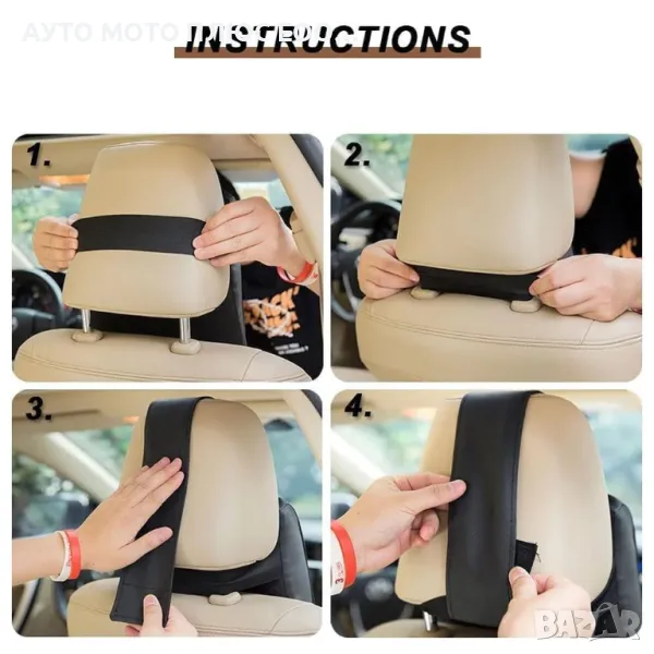 възглавница за врат, монтирана на автомобилната седалка, стабилизира главата и се адаптира по формата ѝ.