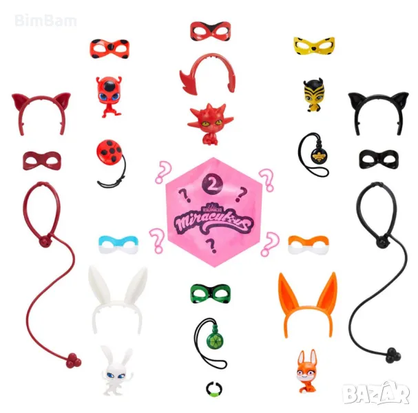 Напълнете контейнера с вода и поставете куклата вътре, за да разкриете цветната магия на калинката. Ще откриете още и прозрачна торбичка с различни аксесоари. Потопете и допълнителната блестяща топка във водата, за да разкриете съответстващата маска и Kwami, както и още един тематичен аксесоар, уникален за всеки костюм.