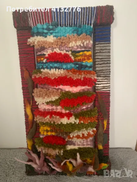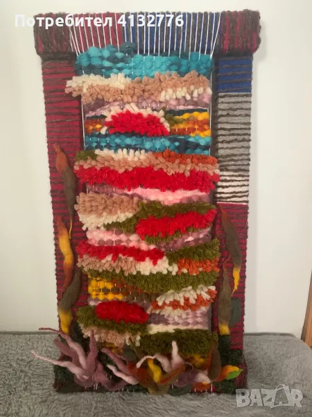 Авторска ръчна изработка. Гоблен „Магия на цветните поляни“. Размер 31,5 Х 59 см. Изработен от естествена прежда, върху дървена рамка. Прекрасен ръчно изработен подарък в уникален дизайн. Ще изпълни дома ви с топлина и уют. Цена 65 лв
