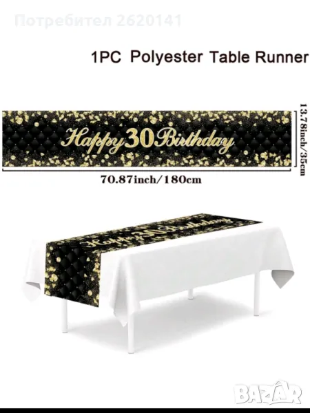 1 бр. 35*180 см черно-златен тишлайфер за 30-ти рожден ден