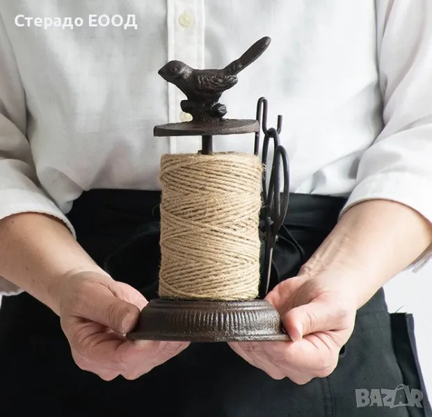 Масивна чугунена стойка за канап или конец в комплект с ножичка и ролка