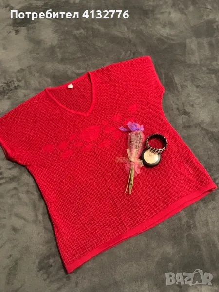 Красива плетена жилетка в червено, с красиви рози, много добро качество. Свободна кройка. Подарък букет лаванду Цена 19 лева.