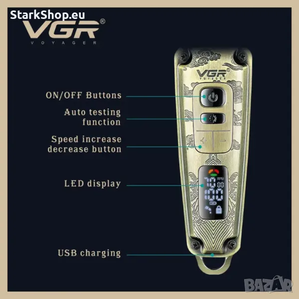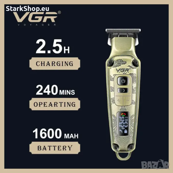 Професионален тример VGR V-901 за коса има метален корпус, който е издръжлив и стабилен и добавя нотка качество към процеса на подстригване.