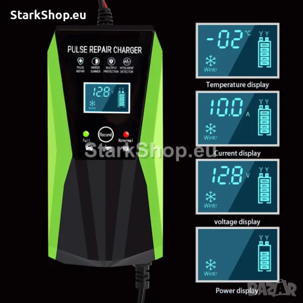 Поддържайте акумулатора на вашaта кола заредена и готова за работа с нашето 12V зарядно за акумулатор. С нов дизайн за лесна употреба, това зарядно устройство осигурява подходящо напрежение за зареждане и интелигентен цифров дисплей за ясно виждане. Вижте състоянието на акумулатора и зареждайте ефективно без никакви проблеми.