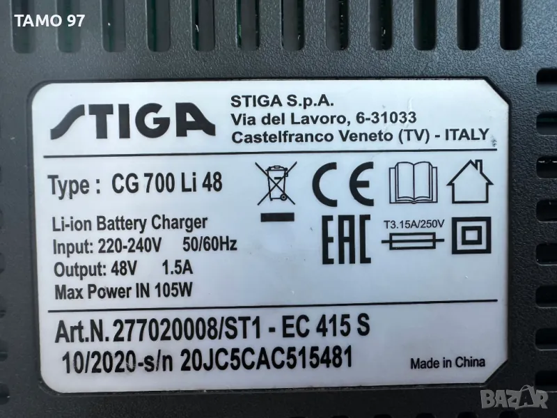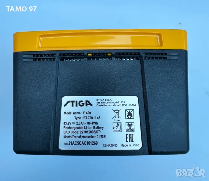 1. Зарядно устройство: Stiga EC 415 S дo 48V - 70лв 2. Акумулаторна батерия: Stiga E 420 43.2V 2.0Ah с индикатор - 130лв