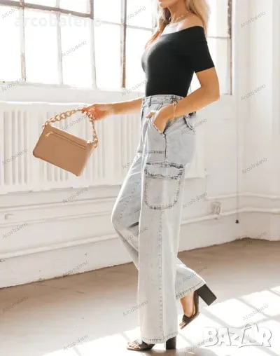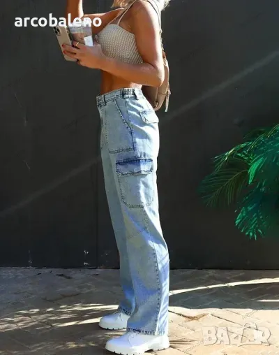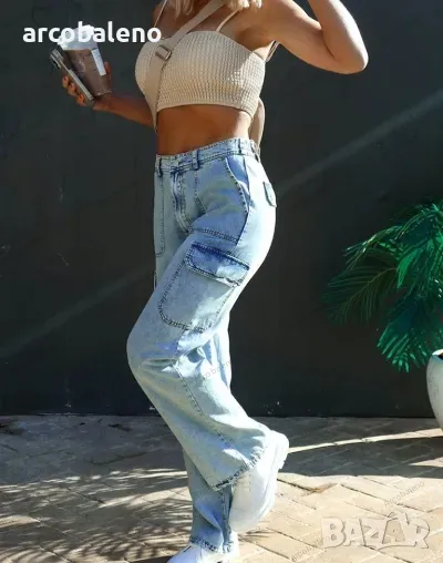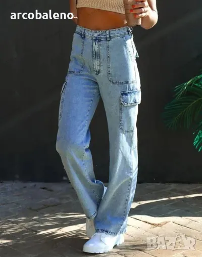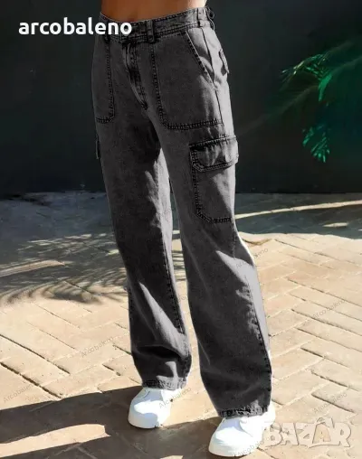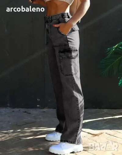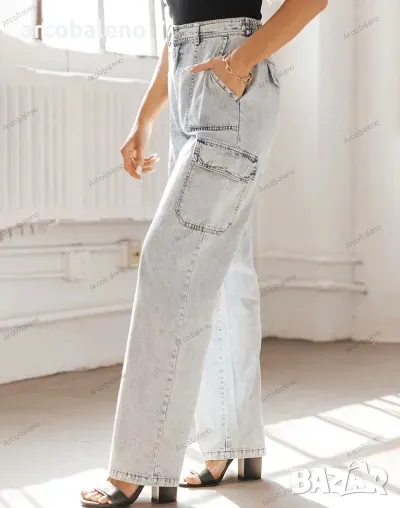 Дамски дънки с много джобове от пран деним, 3цвята