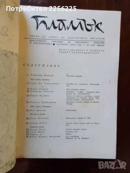 Списание "Пламък" от 1970г. Цена 2лв.Двуседмично списание за литература,изкуство и публицистика.Основано през 1924г от Гео Милев .Всички 24бр за годината ( продава се целия ЛОТ ) за 45лв.
