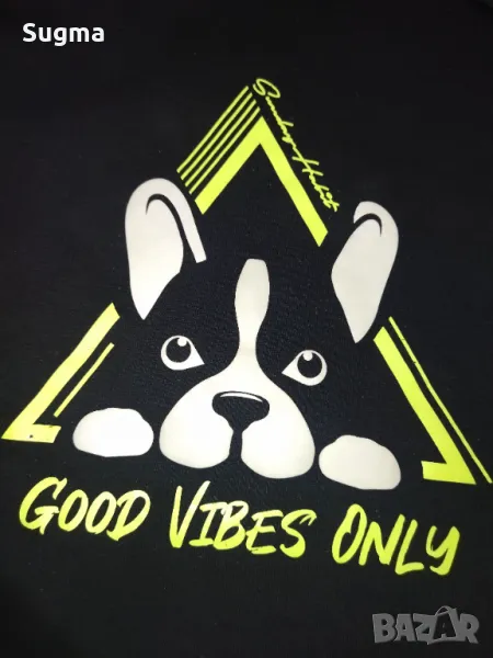 Суитчер с фосфорициращ надпис /кученцето/ , М размер, с нормални следи от носене.