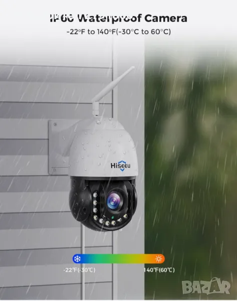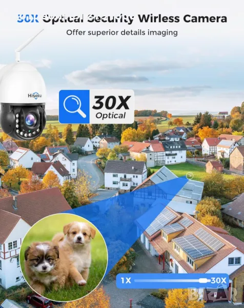 Безжична охранителна камера Hiseeu 30X оптично увеличение 3MP PTZ 250 фута HD цветно нощно ви