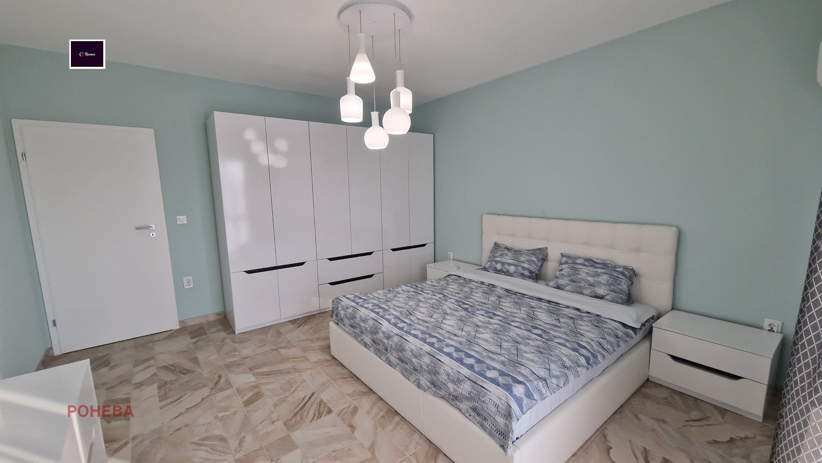 Втора спалня 12 кв.м обзаведена с : Легло персон и половина, гардероб