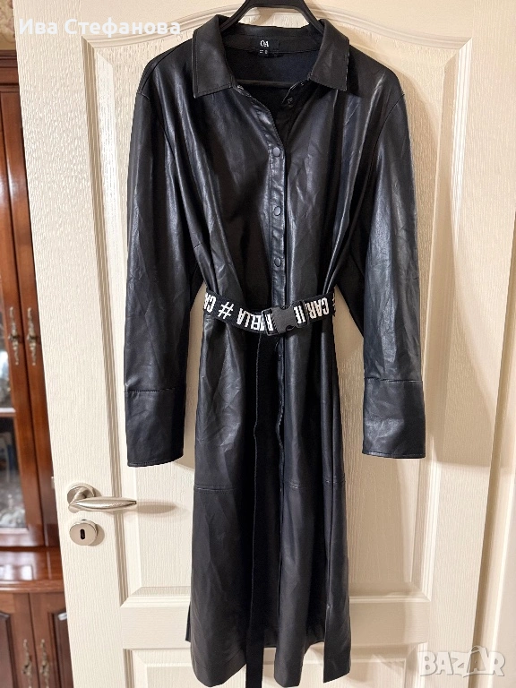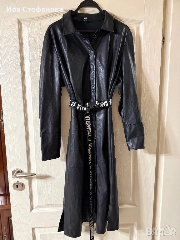 Нова дълга черна луксозна кожена кожа елегантна рокля . Дължина миди елегантна 110 см, бюст 115 см до 122 см . С колан може да се сменя колана пращам с черно белия колан Разгледайте и другите ми обяви .