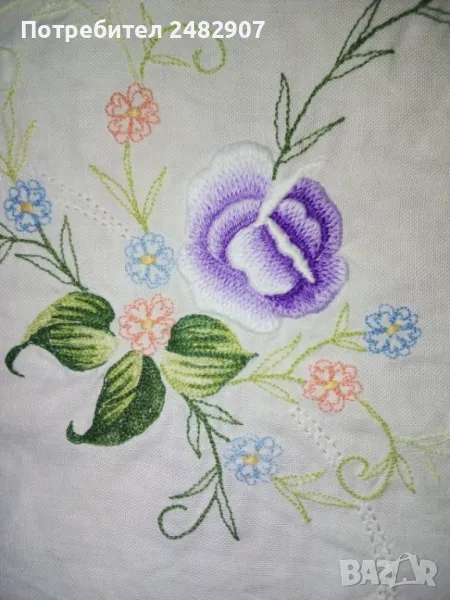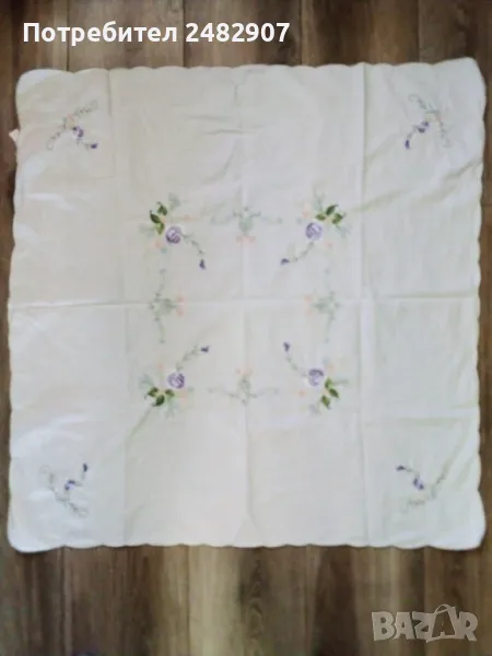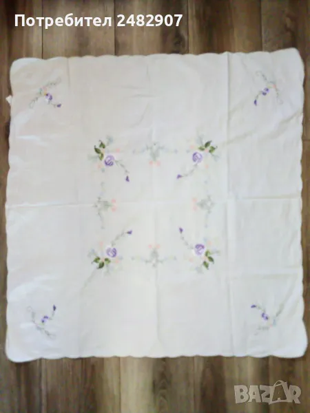 Красиво машинно бродирано каре за маса в бяло. Размери - 78/80 см. Много запазено, почти не е използвано.