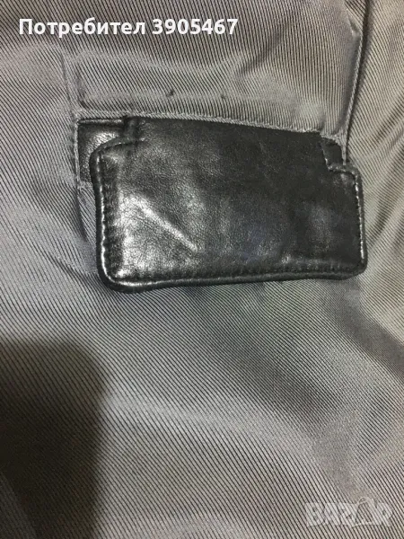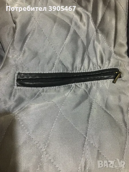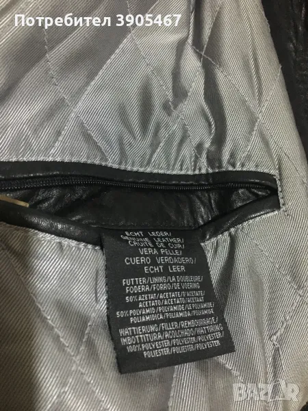 Якето е от естествена,черна, превъзходно обработена кожа /мека и приятна на допир, като коприна/. Четири външни джоба, два с копак и два с цип, един върху друг. Отвътре има три джоба, един с цип, един с капаче и третият е без покривало. Якето е 3/4 размер, просто е страхотно. Рамене 60, ръкав 68 см и дължина 80 см.