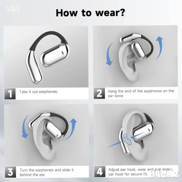 Слушалки с отворено ухо Bluetooth 5.4 Слушалки над ухото Слушалки Ергономичен дизайн Закачки за уши