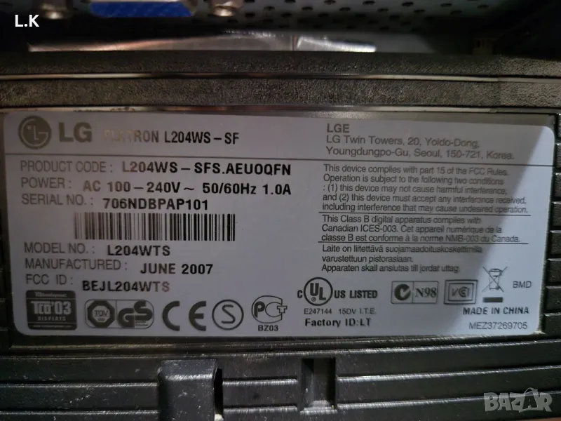 Монитор LG Flatron L204WS 20"+клавиатура и кабел , снимка 1 - Монитори - 48091327 Монитор LG Flatron L204WS 20"+клавиатура и кабел , снимка 2 - Монитори - 48091327 Монитор LG Flatron L204WS 20"+клавиатура и кабел , снимка 3 - Монитори - 48091327 1/3