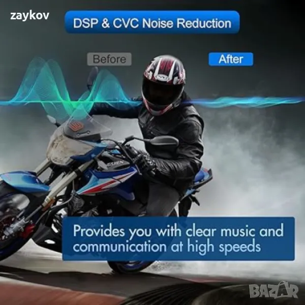 Намаляване на шума и Hi-FI стерео качество на звука. С усъвършенствана технология за шумопотискане DSP & CVC и A2DP Bluetooth профил, който осигурява най-доброто качество на звука за входни и изходни звуци на Bluetooth слушалките TK-X2, което ви позволява да слушате музика и чисти комуникации при високи скорости, без да се разсейвате от вятъра , шум от двигателя и трафика.