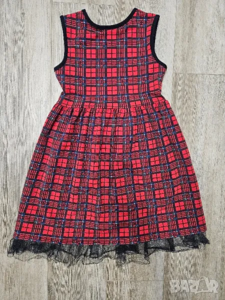 Комплект памучна карирана червена празнична детска рокля с болеро ръст 134
