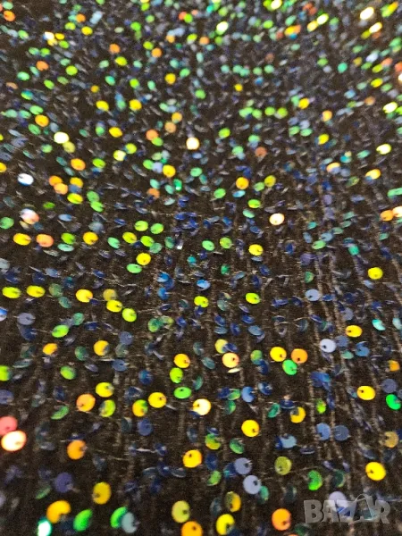 На единия ръкав има няколко липсващи пайети, но т.к те много блестят в различни цветове и материята е кадифе и има лъскавина, това не се забелязва при носене. Показано е на последната снимка.