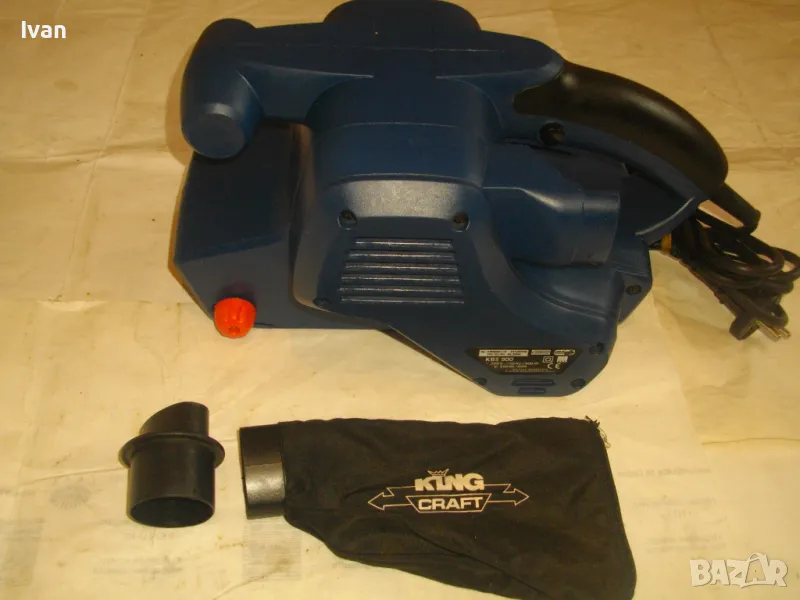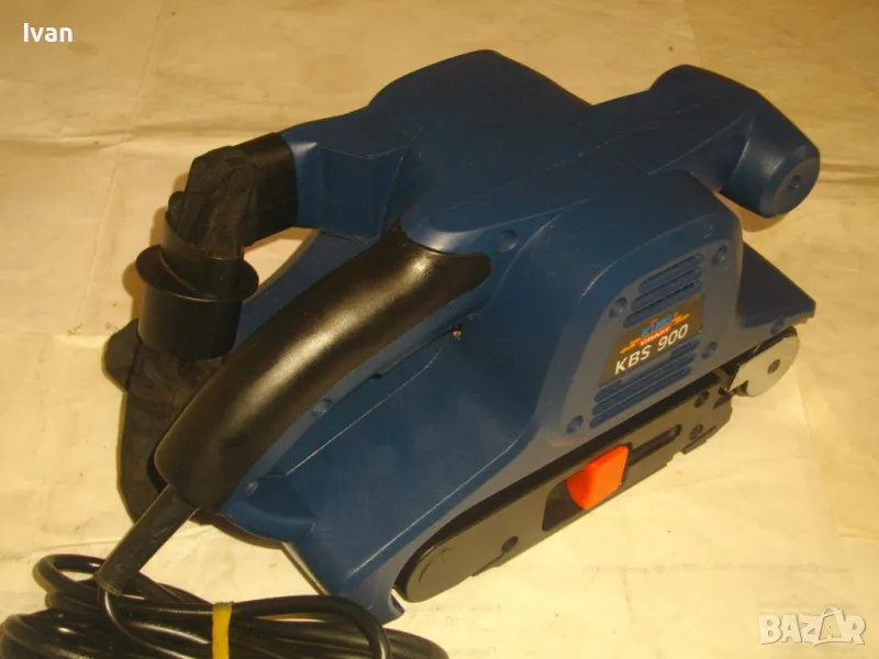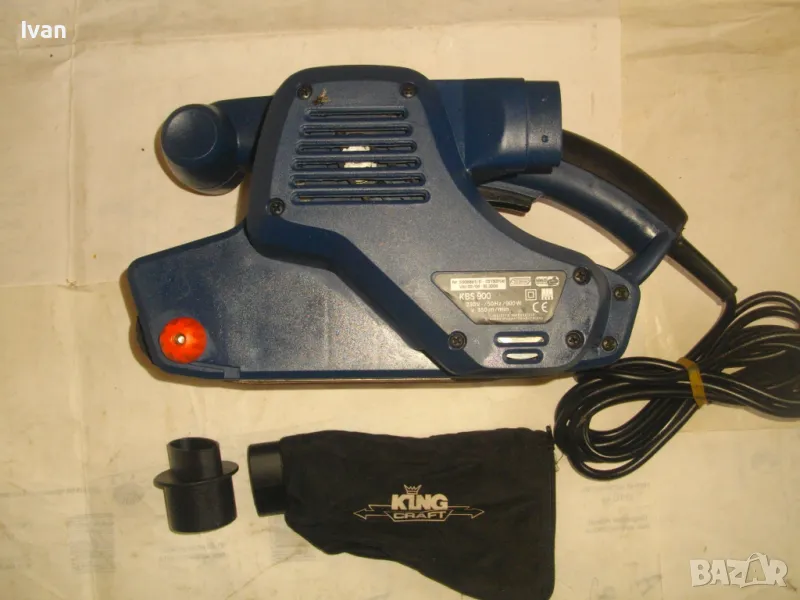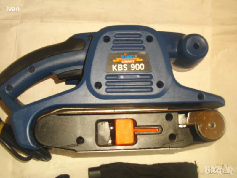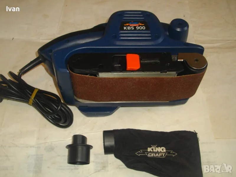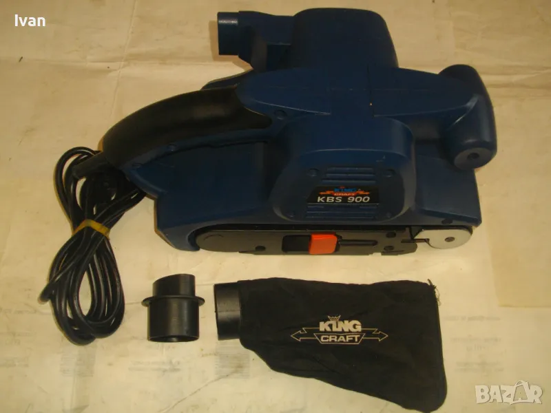 Лентов шлайф НОВ немски оригинален 900 ватов модел на Кинг Крафт. Съвсем нов, неизползван и неупотребяван. В отлично работно състояние. Марка и модел KING CRAFT KBS 900. Производител Meister Werkzeuge - производство маркирано 2004 г. - Germany. Мощност на машината 900 вата ,скорост 350 м/мин. За шкуркови ленти пояси размер 75 х 533 мм. Поставена шкуркова нова лента на машината. Автостоп. Налична е оригиналната торба за прах с цип, наличен е накрайник за скочване с маркуч на прахосмукачзка за конектора на отпадъчна прах. Тегло на машината - 4,0 кг.