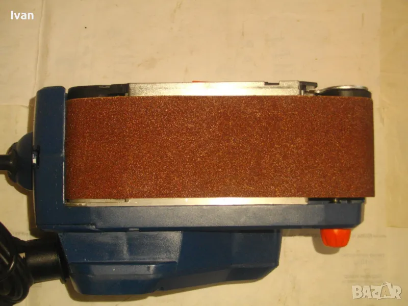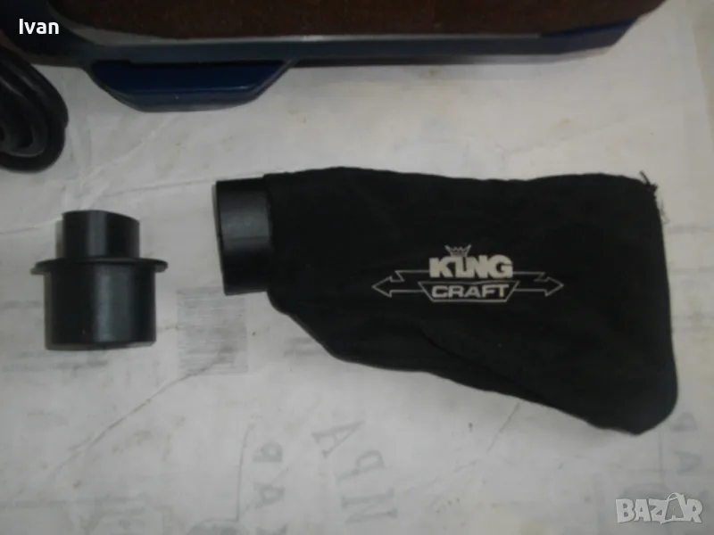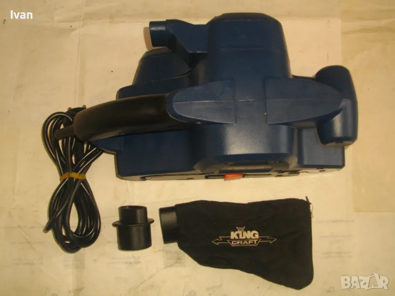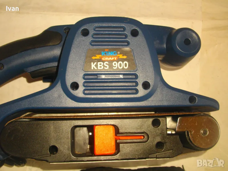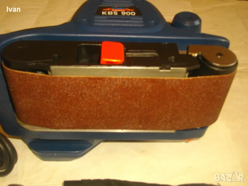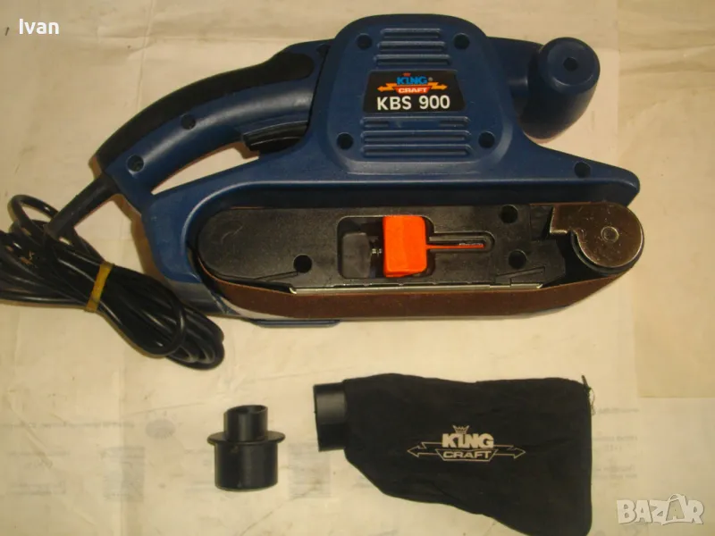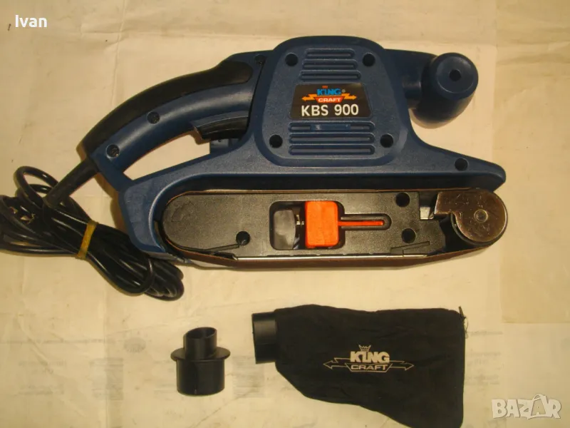 Лентов шлайф НОВ немски оригинален 900 ватов модел на Кинг Крафт. Съвсем нов, неизползван и неупотребяван. В отлично работно състояние. Марка и модел KING CRAFT KBS 900. Производител Meister Werkzeuge - производство маркирано 2004 г. - Germany. Мощност на машината 900 вата ,скорост 350 м/мин. За шкуркови ленти пояси размер 75 х 533 мм. Поставена шкуркова нова лента на машината. Автостоп. Налична е оригиналната торба за прах с цип, наличен е накрайник за скочване с маркуч на прахосмукачзка за конектора на отпадъчна прах. Тегло на машината - 4,0 кг.