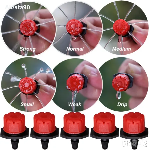 Подходящ за напоителни системи за лозя, овощни градини, както и напояване на декоративни дръвчета и храсти. Струята е тип душ, капейки не в средата, а от улейчетата отстрани. Дебита може да се регулира от 0 до 70 л.час