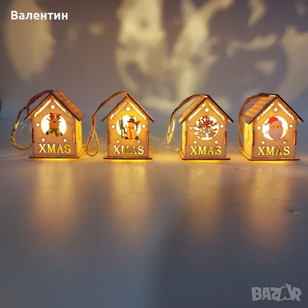 Дървена коледна украса Къщичка 5.5 х 3.5 см → Обява 48092859