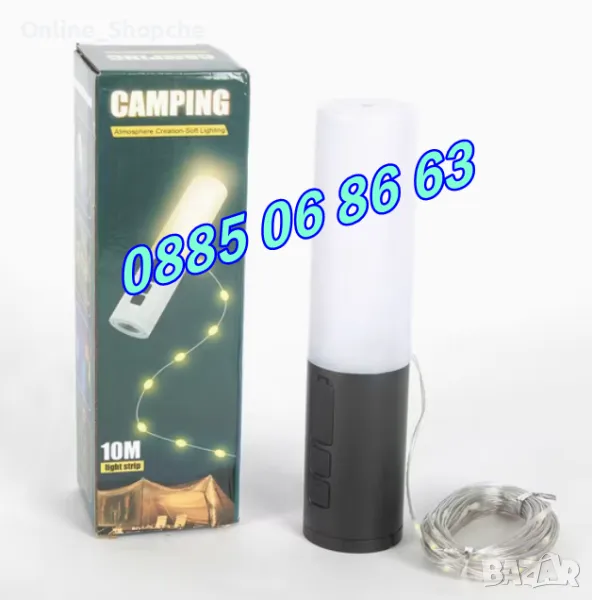 Къмпинг Лампа с 10 м LED лента жълта светлина, коледна украса