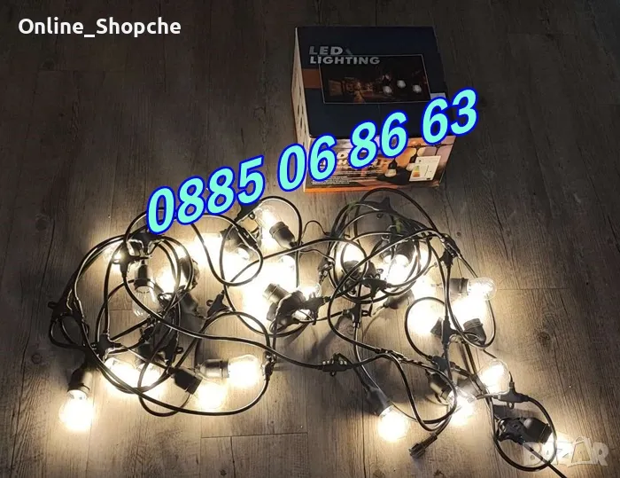 светещи крушки (10 на брой). Разстоянието между всяка крушка е 50см. за