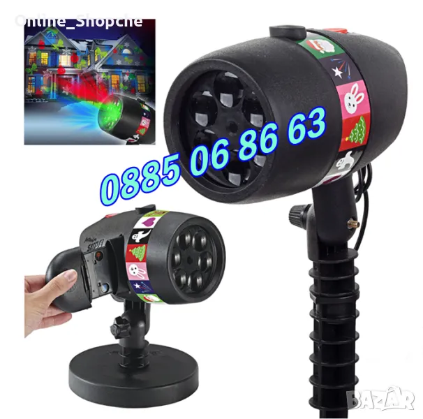 Коледен прожектор с 12 празнични слайдове, прожектор с коледни фигурки