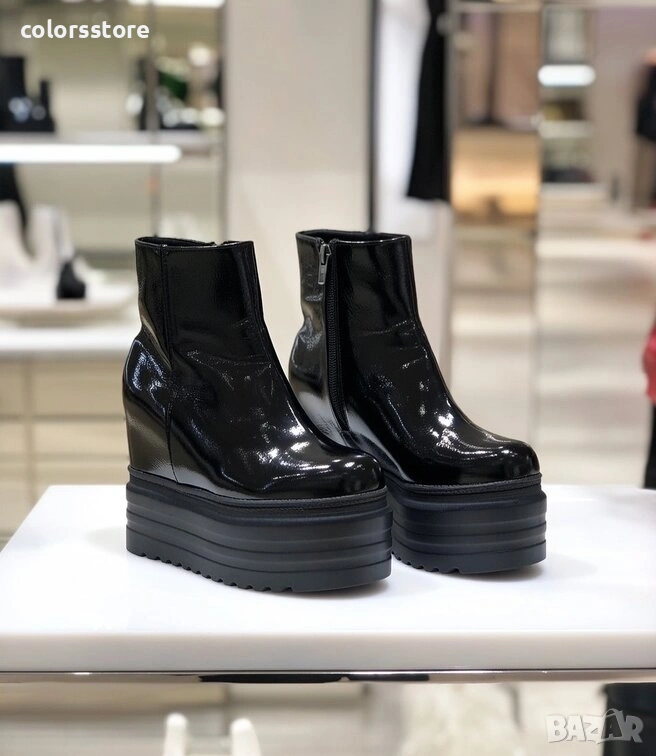 Боти на платформа - черен лак - SJB50