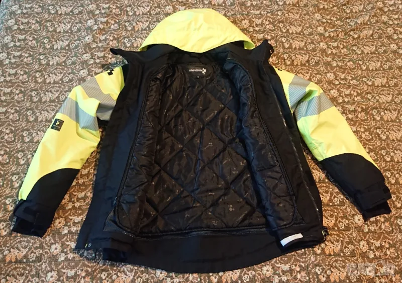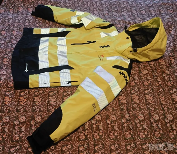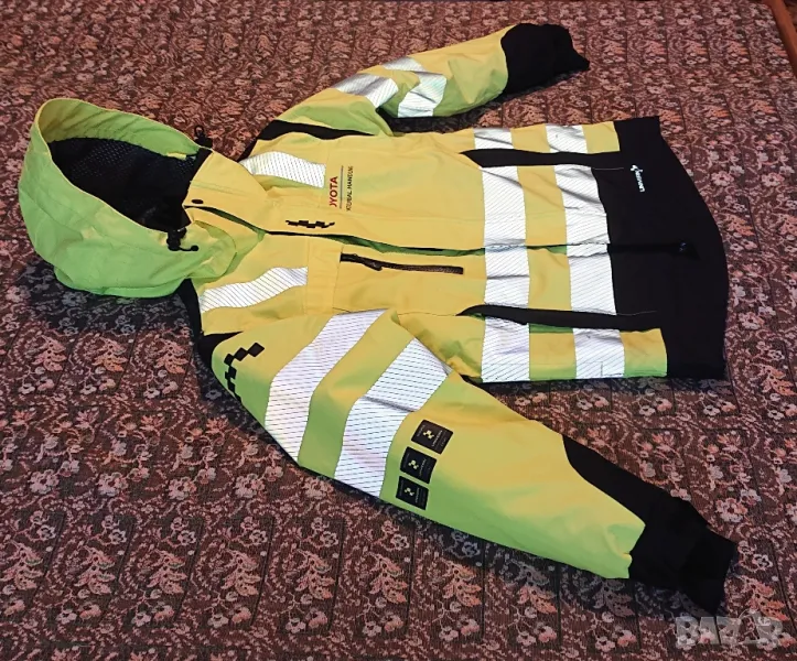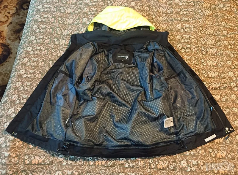 Без забележки. Якето е най-висок клас. Състояние близко до ново. Отговаря на размер М. Ориентировъчно 177 / 74. Точните размери са на етикета, който е сниман. Ветроустойчива, водоустойчива и дишаща материя. Всички шевове са подлепени. Сваляща се качулка с много възможности за регулиране. Якето има мрежеста подплата, но е снабдено и с подвижна ватирана подплата, поради което може да се използва през цялата година. Импулсни нагреватели и регулиране в ръкава. Водоустойчиви ципове под мишниците за максимална вентилация. Джоб за мобилен телефон, скрит зад здрав капак, който покрива и предния цип. Външен джоб на гърдите с водоустойчив цип, фиксиран джоб за лична карта отвътре. Странични джобове с капак и цип. Вътрешни джобове. Регулируем ластик в долната част.