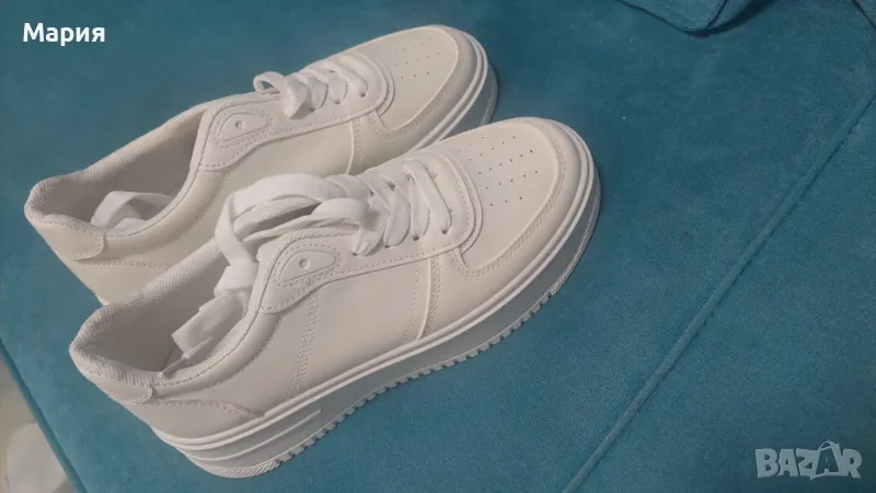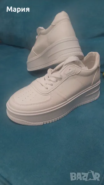 Бели кожени кецове с удобна платформа Състояние-ново.