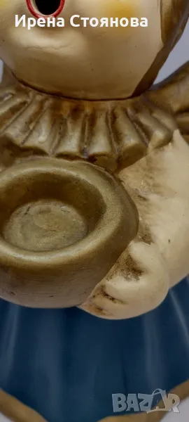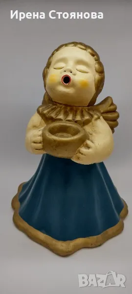 Декоративен, коледен ангел с място за свещ, Германия. Височина 36 см, в основа 27-29 см. Минимални следи от употреба/съхранение. Цена 45 лв.