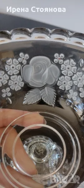 Фруктиера/бонбониера Walther Glas, серия Annette, кристалин. Височина 15,5 см, диаметър 18 см. Минимални следи от употреба на места. Цена 40 лв.