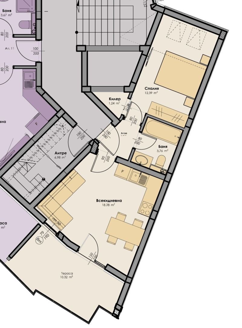 🛋 Състои се от: входно антре, всекидневна с кухненски бокс, спалня, килер, баня с тоалетна и тераса.
